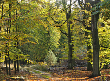 Over oude karrensporen, door holle wegen en door beukenbossen.